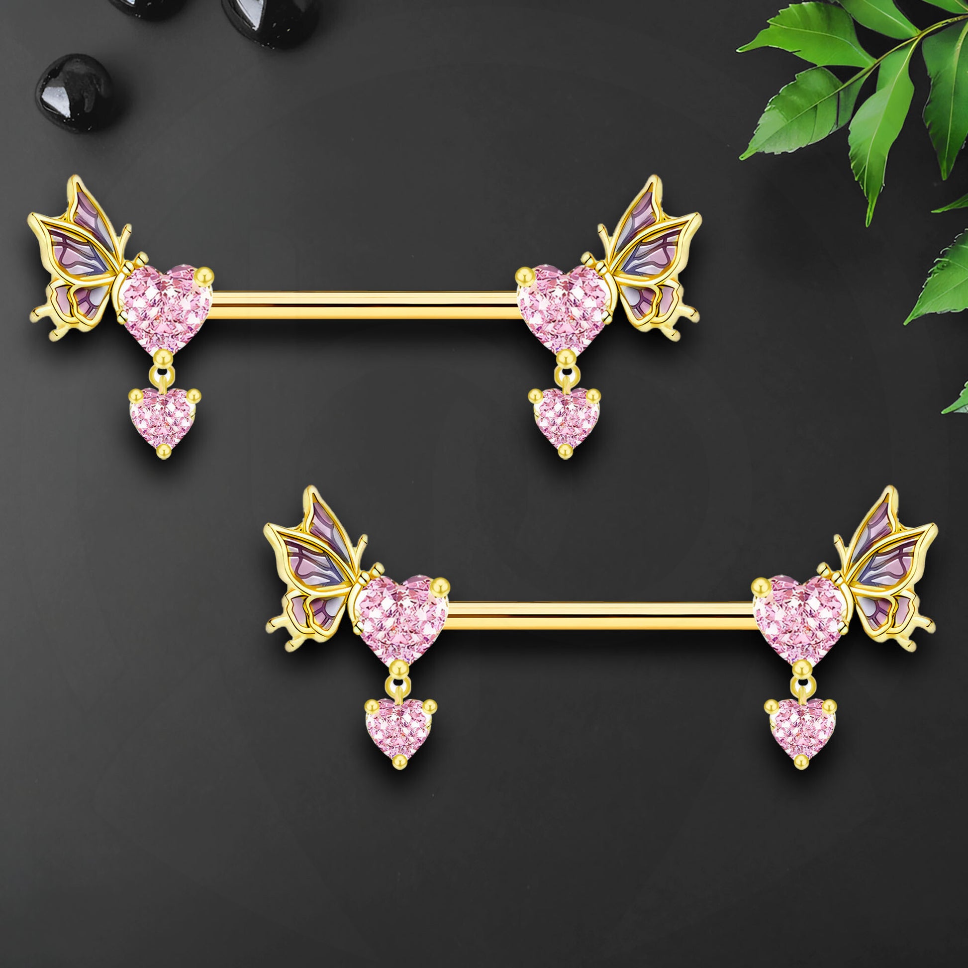 Surgical Steel Nipple Jewelry with Butterflies and Hearts CZ