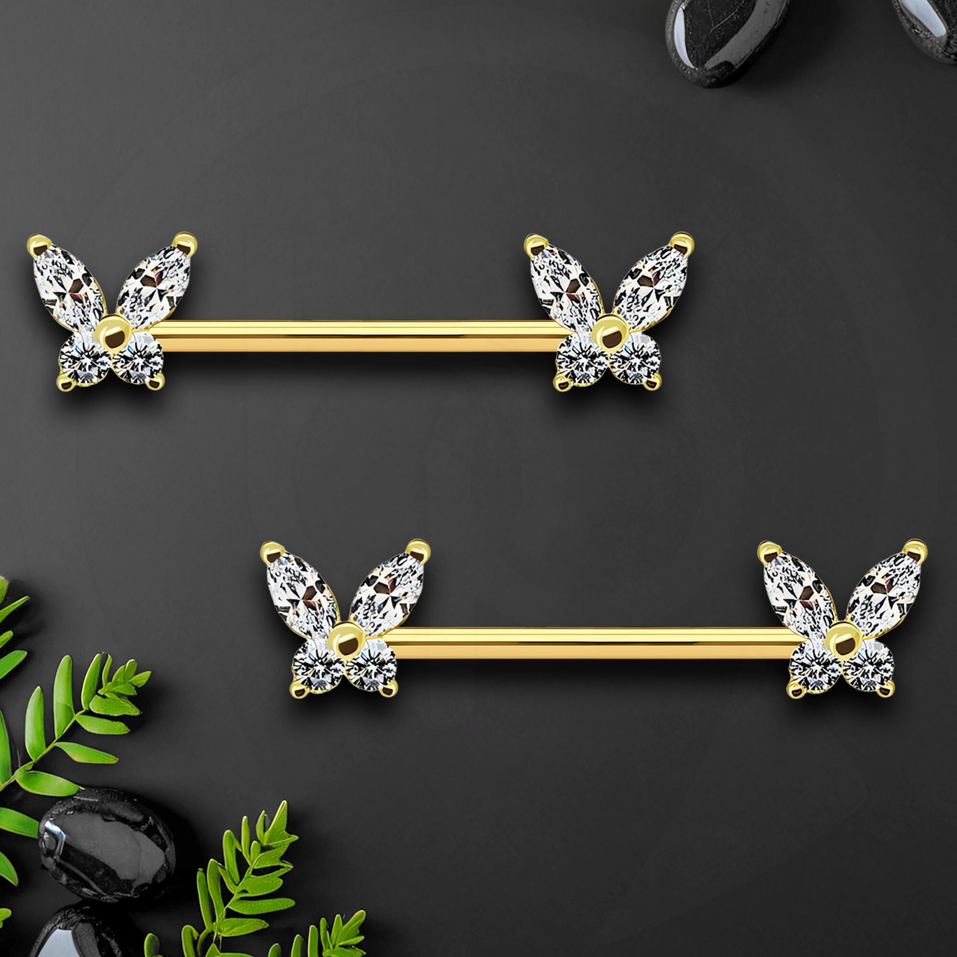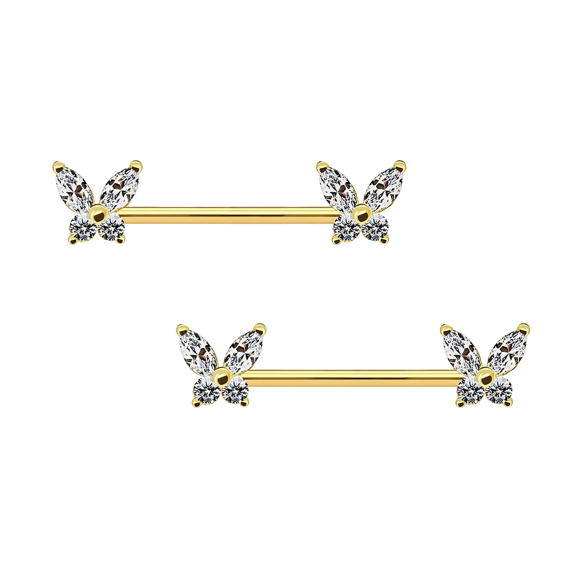 Surgical Steel Nipple Jewelry with Crystal Butterflies