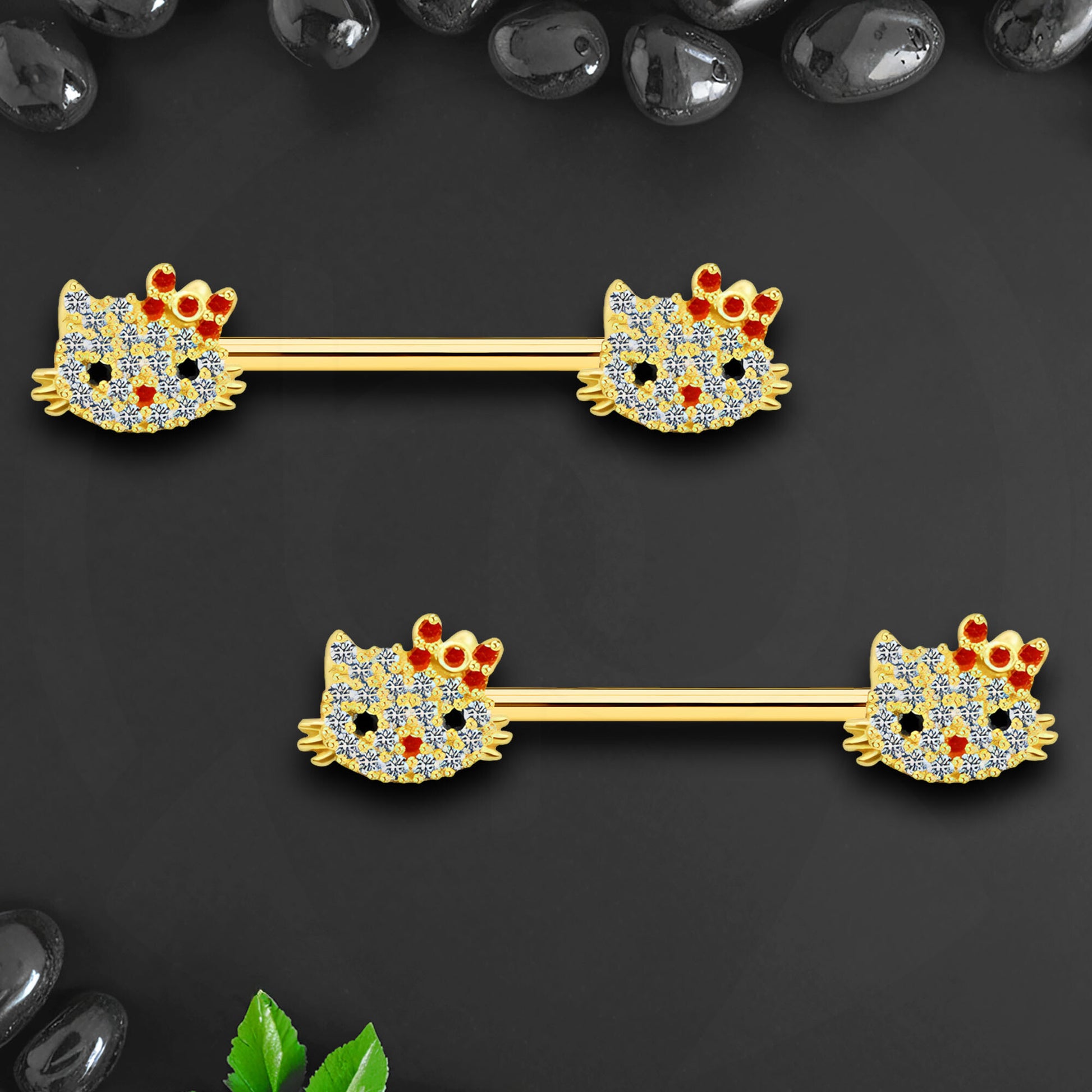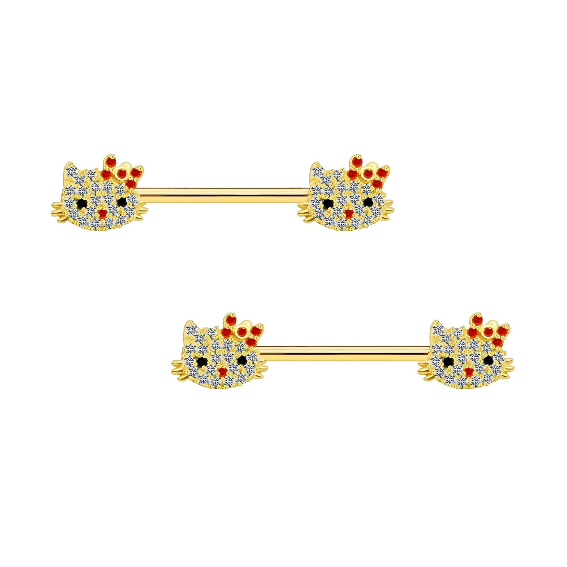 Surgical Steel Nipple Jewelry with Cute Crystal Kitties