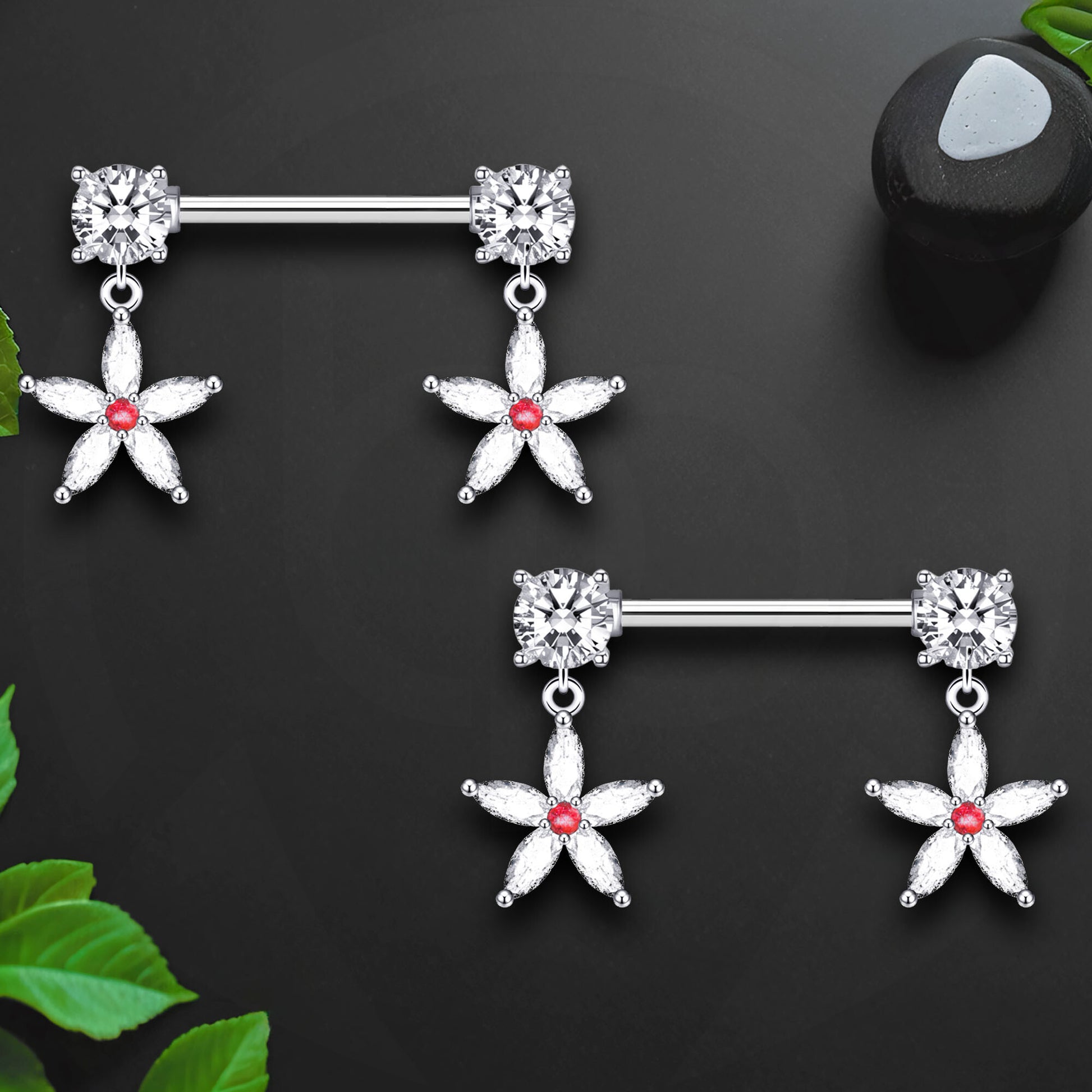 Surgical Steel Nipple Jewelry with Crystal Flowers
