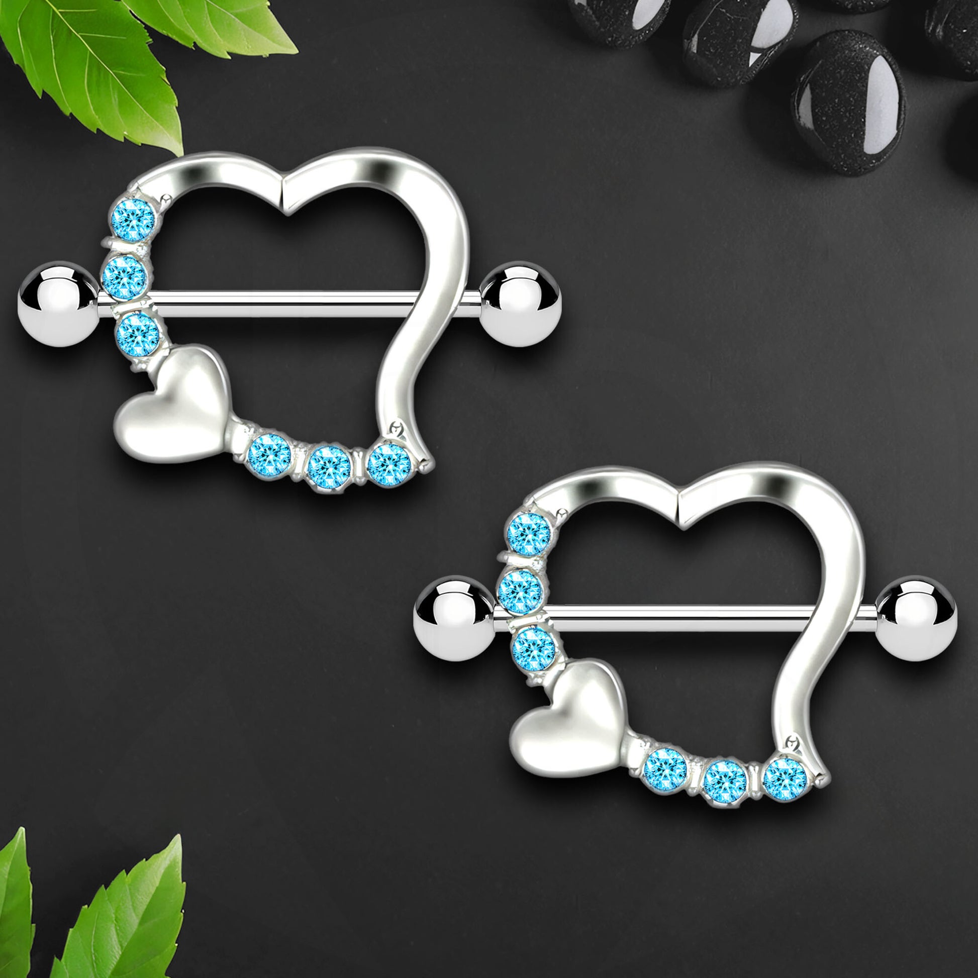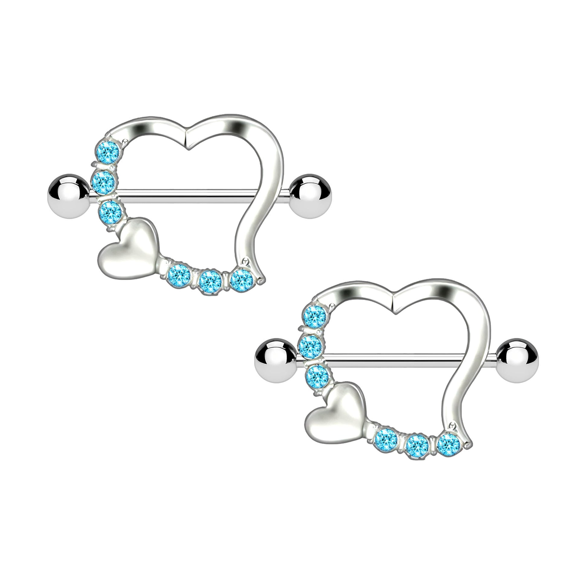 Surgical Steel Nipple Jewelry with Blue Heart Ornament