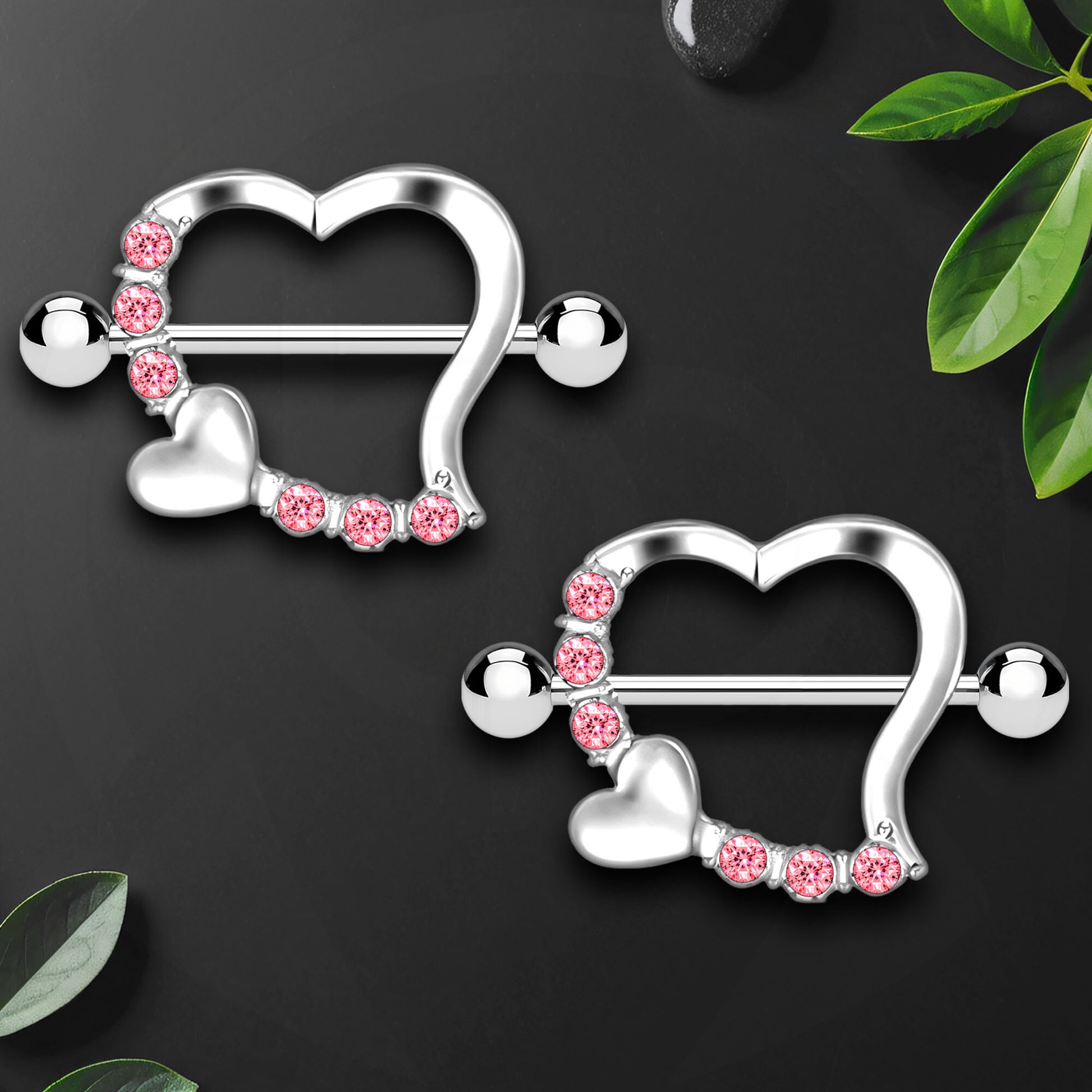 Surgical Steel Nipple Jewelry with Red Heart Ornament