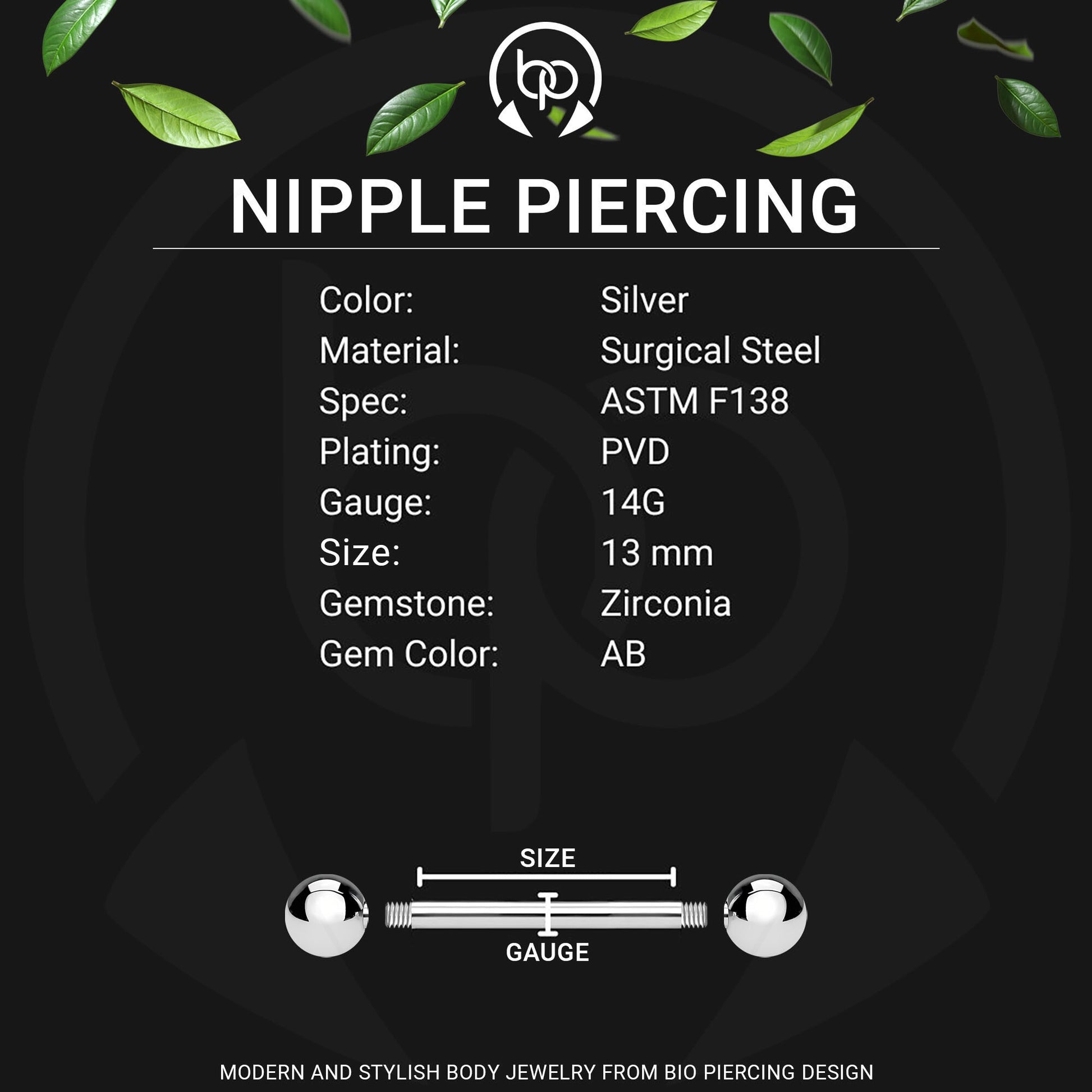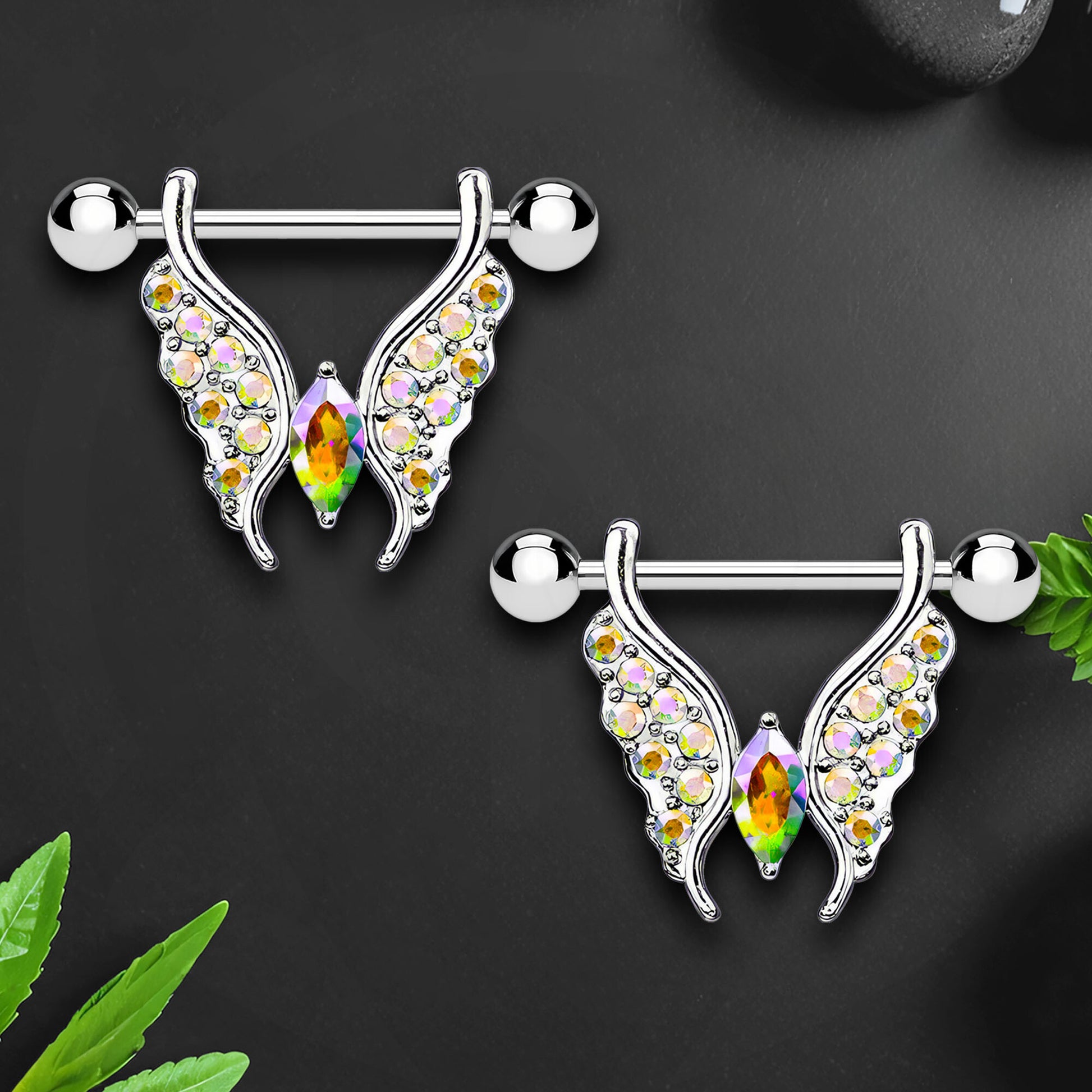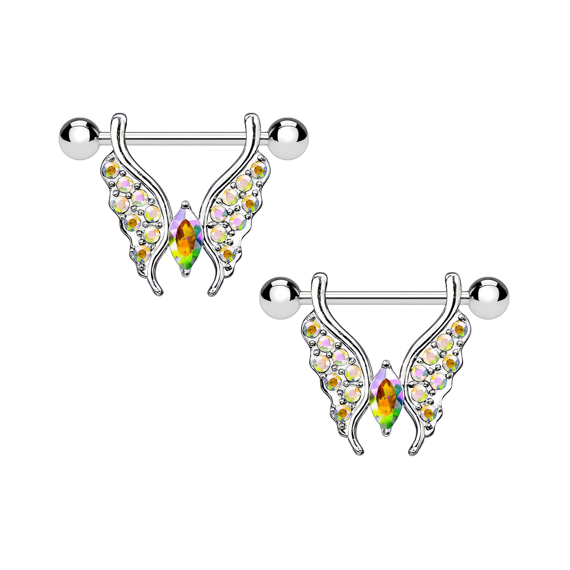 Surgical Steel Nipple Jewelry with Butterfly and Zirconia