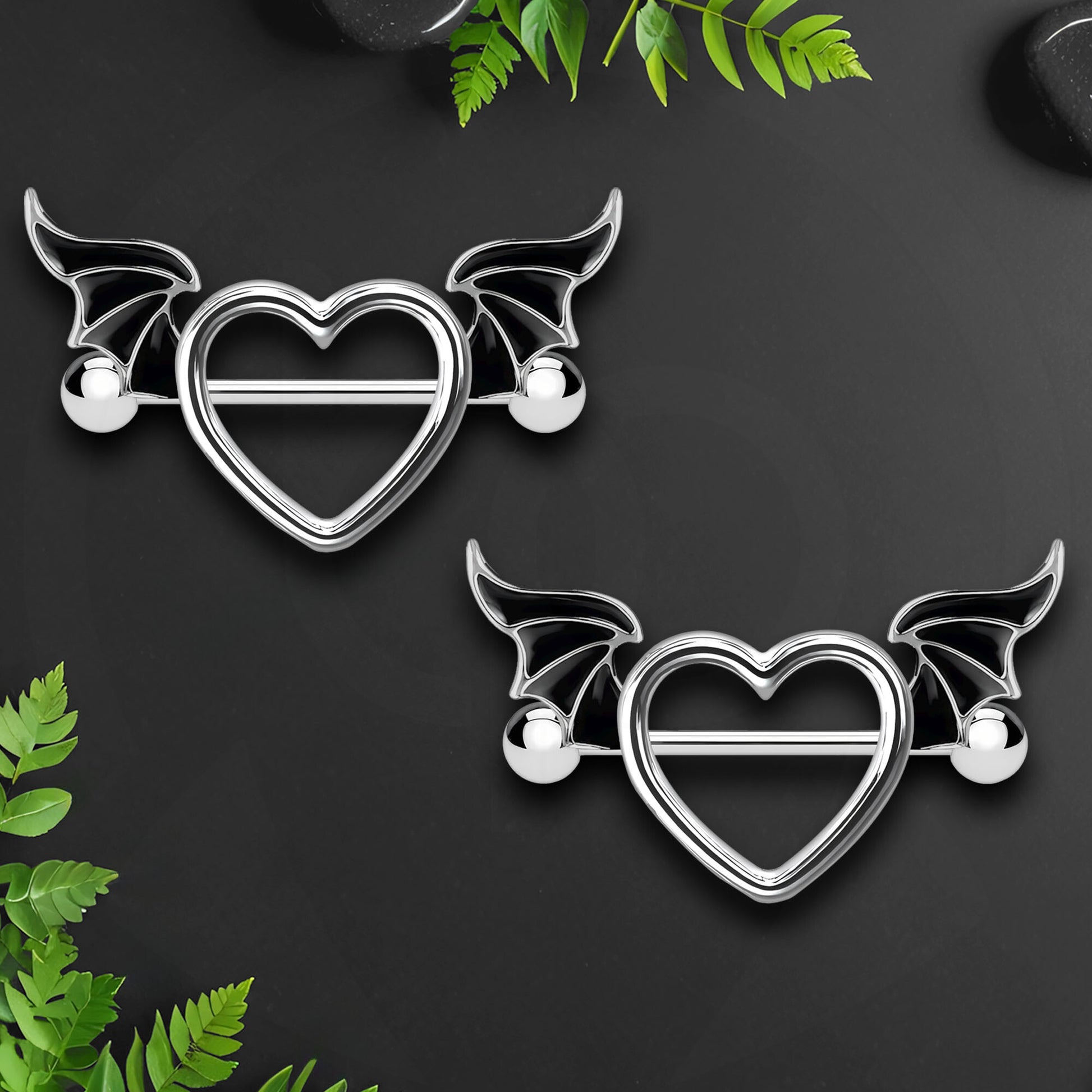 Surgical Steel Nipple Jewelry in Flying Heart Style