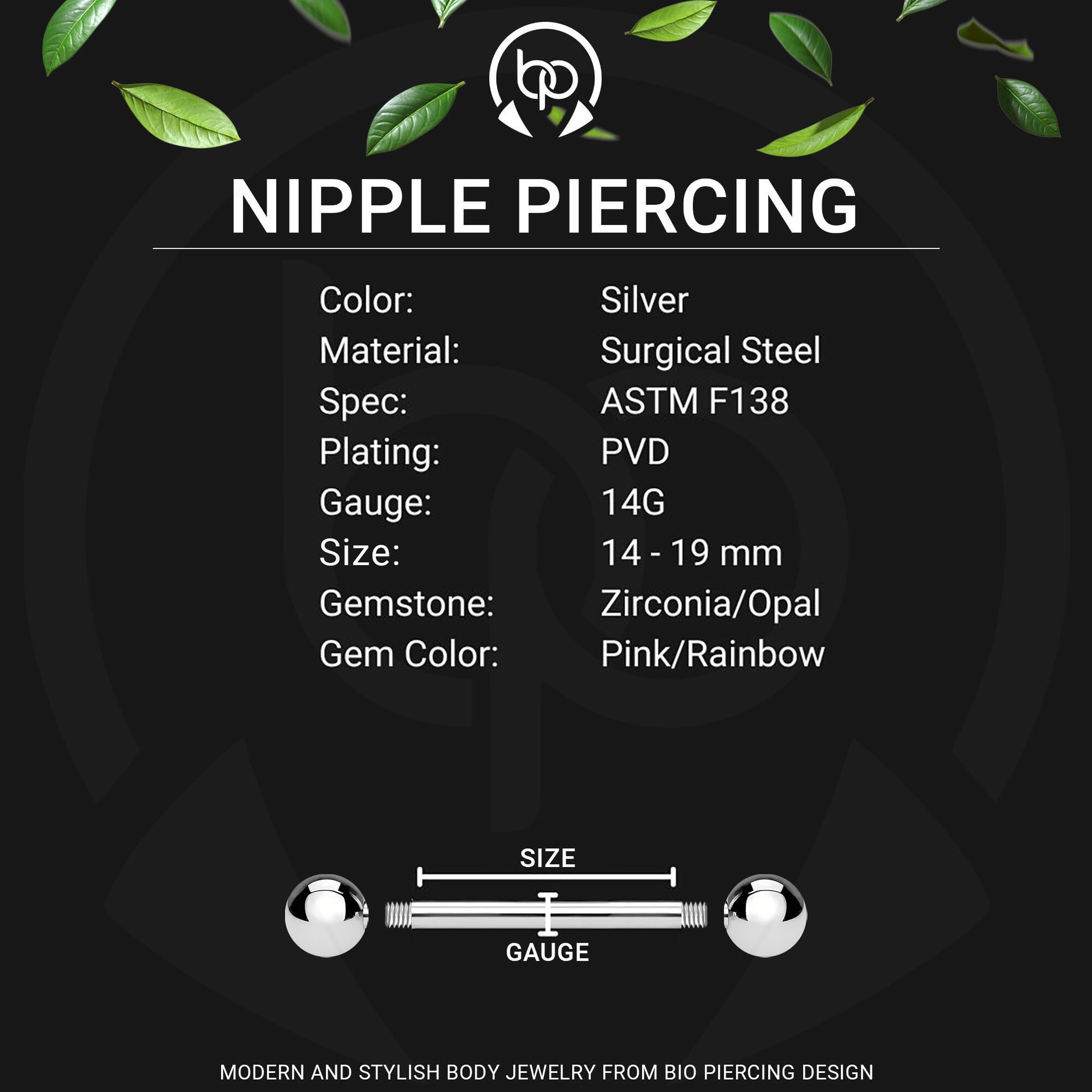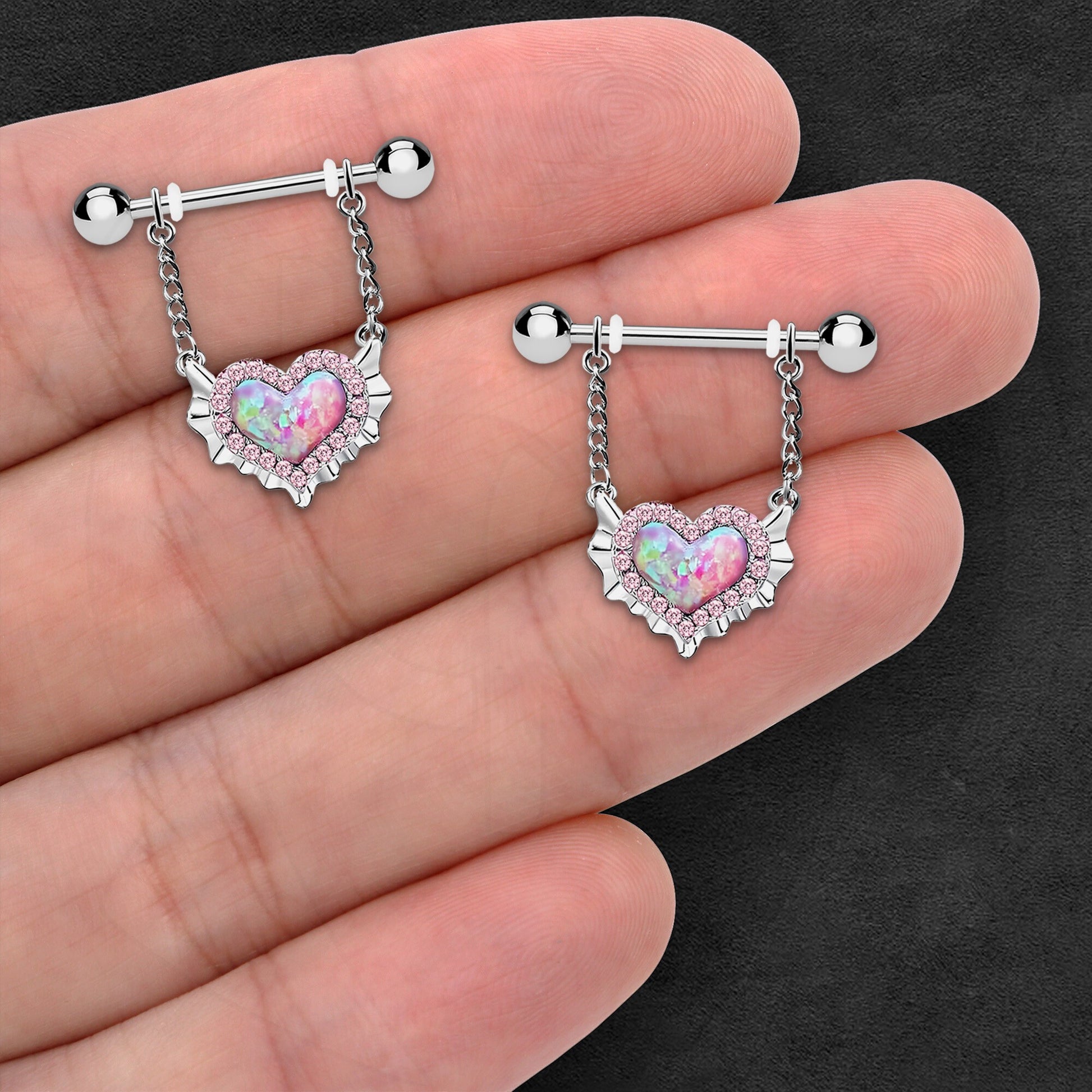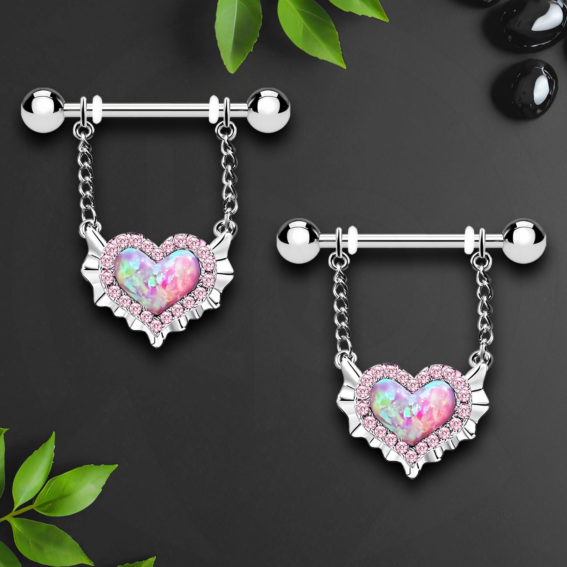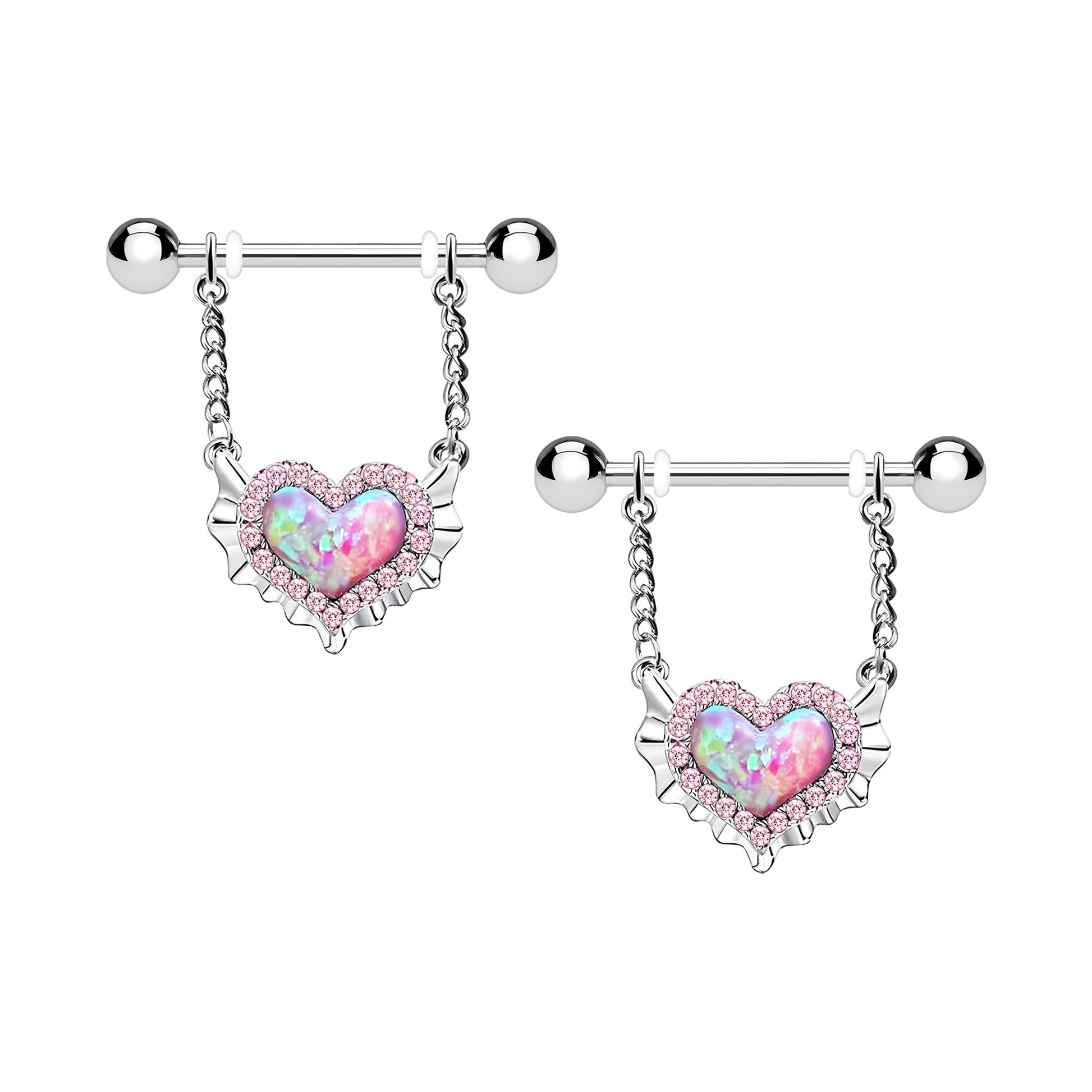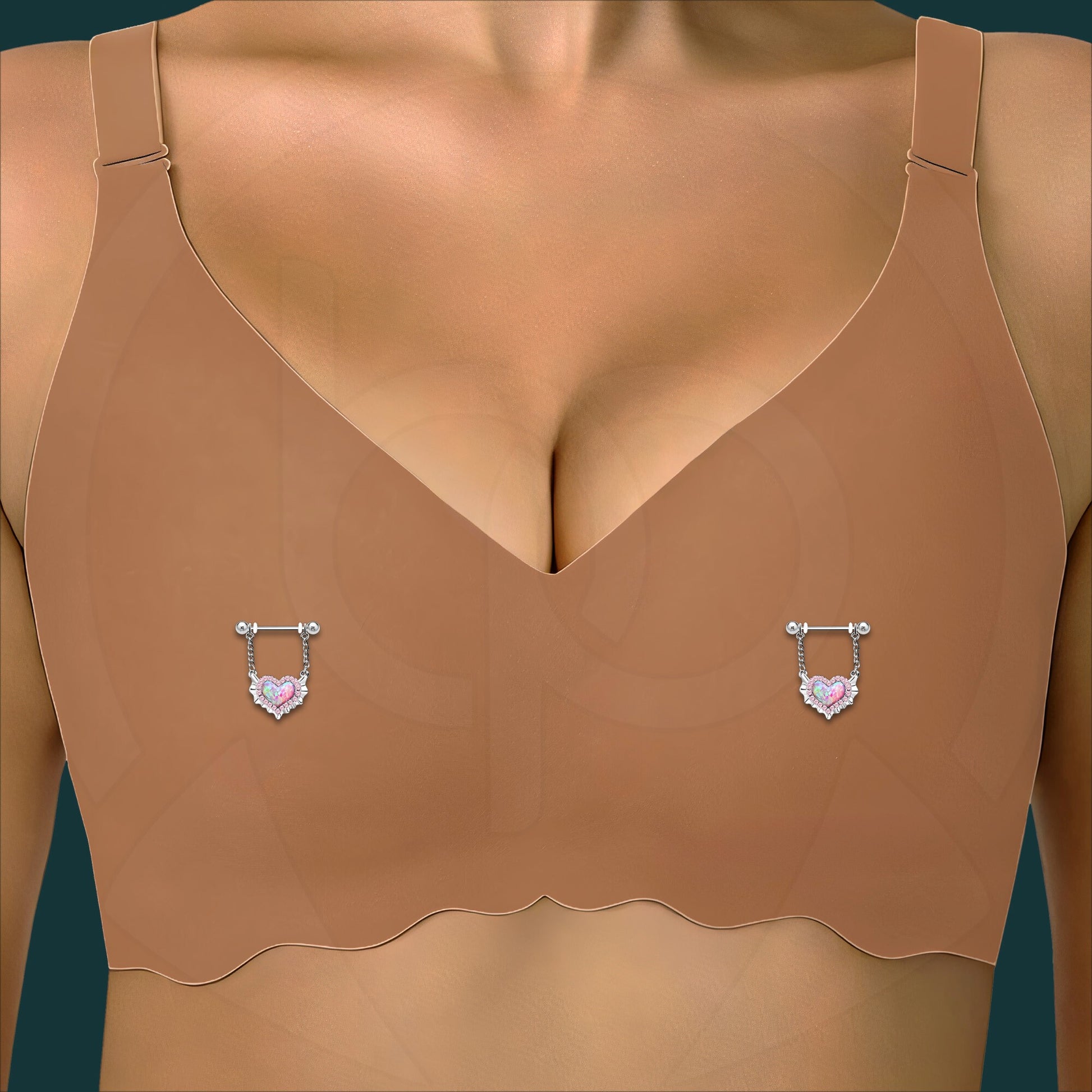 Surgical Steel Nipple Jewelry with Rainbow Opal Heart