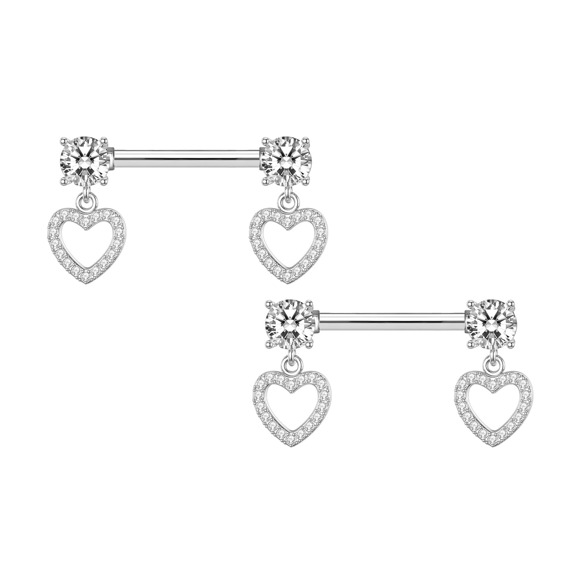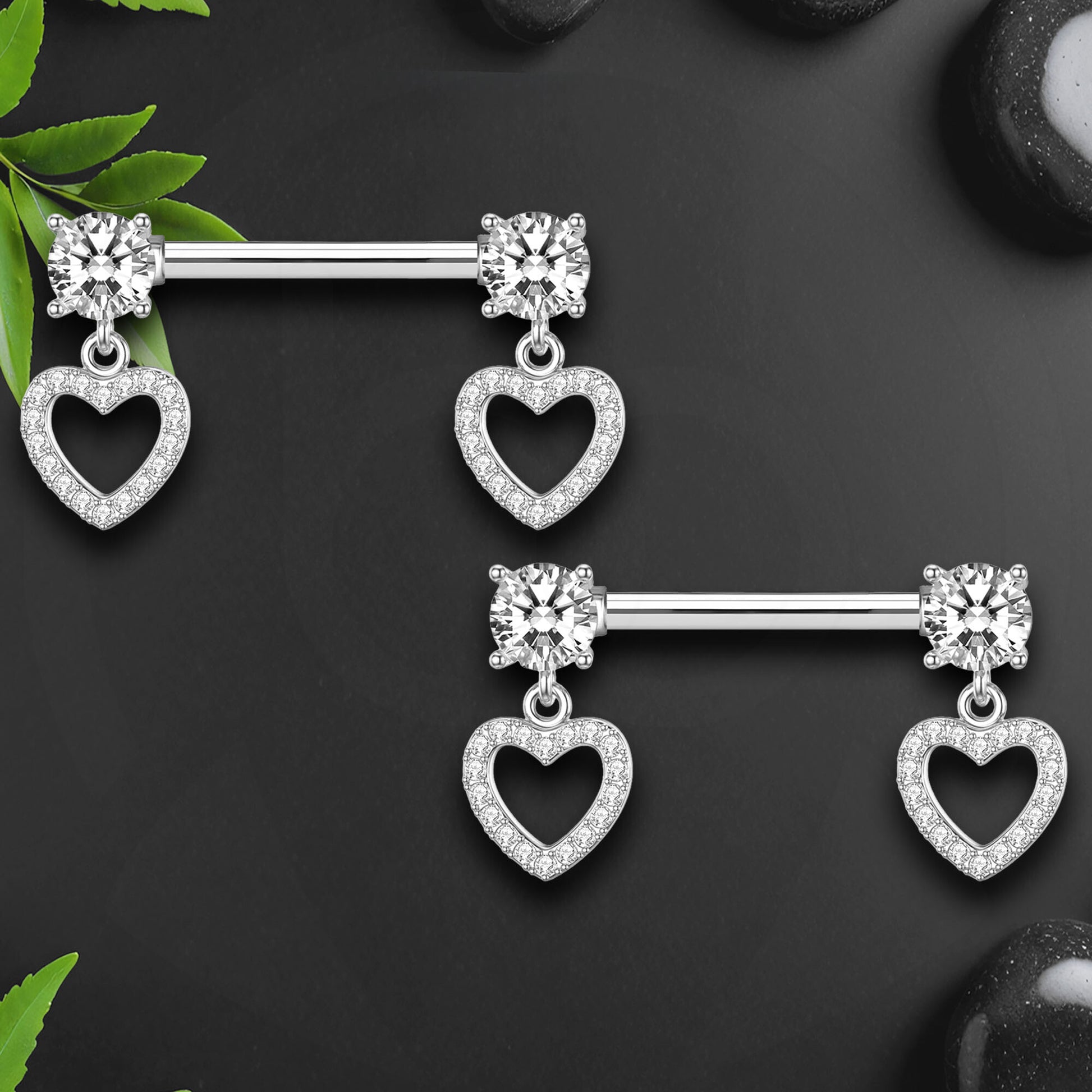 Surgical Steel Nipple Jewelry with Hearts Dangle and CZ