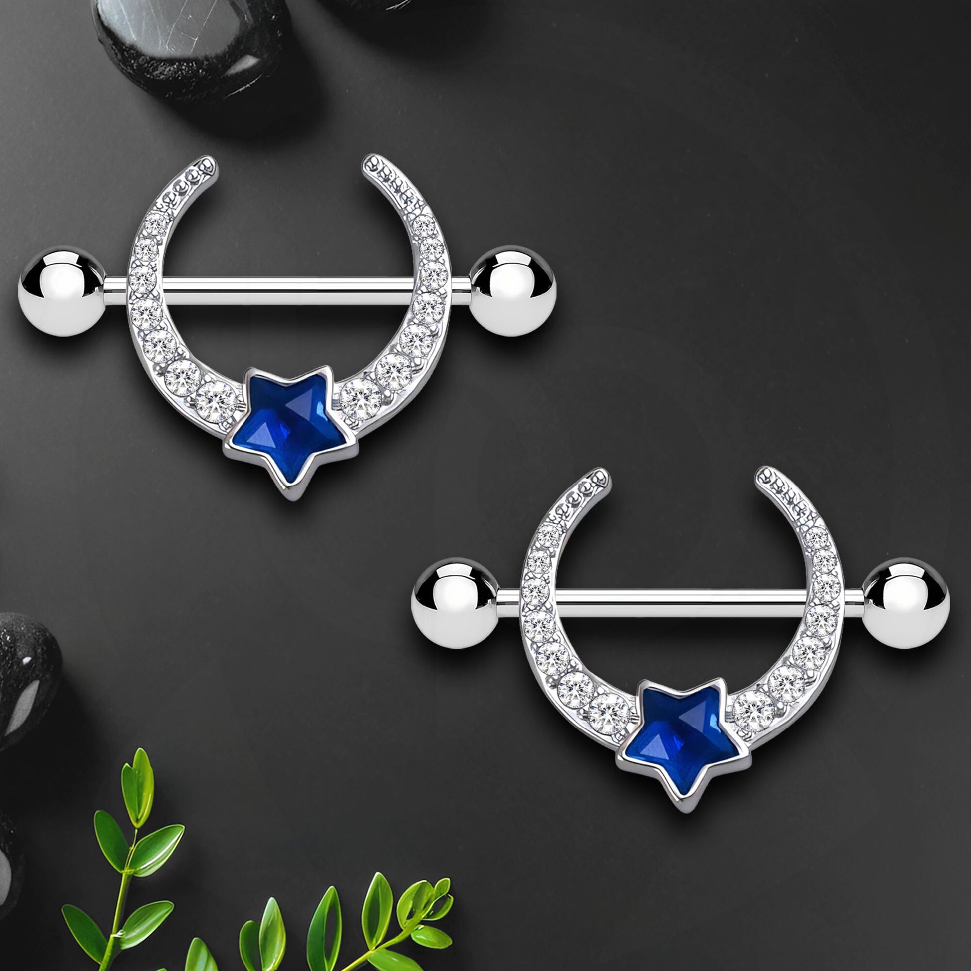 Surgical Steel Nipple Jewelry with Moon and Blue Star