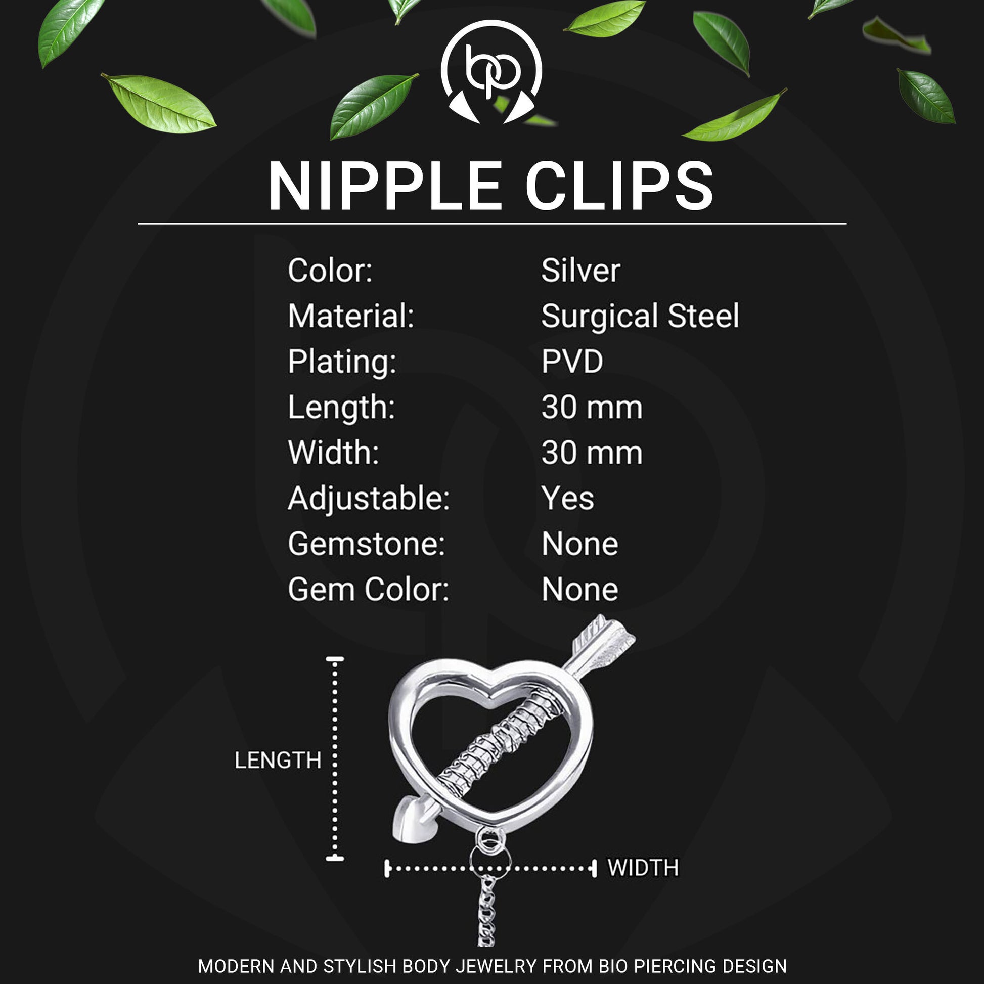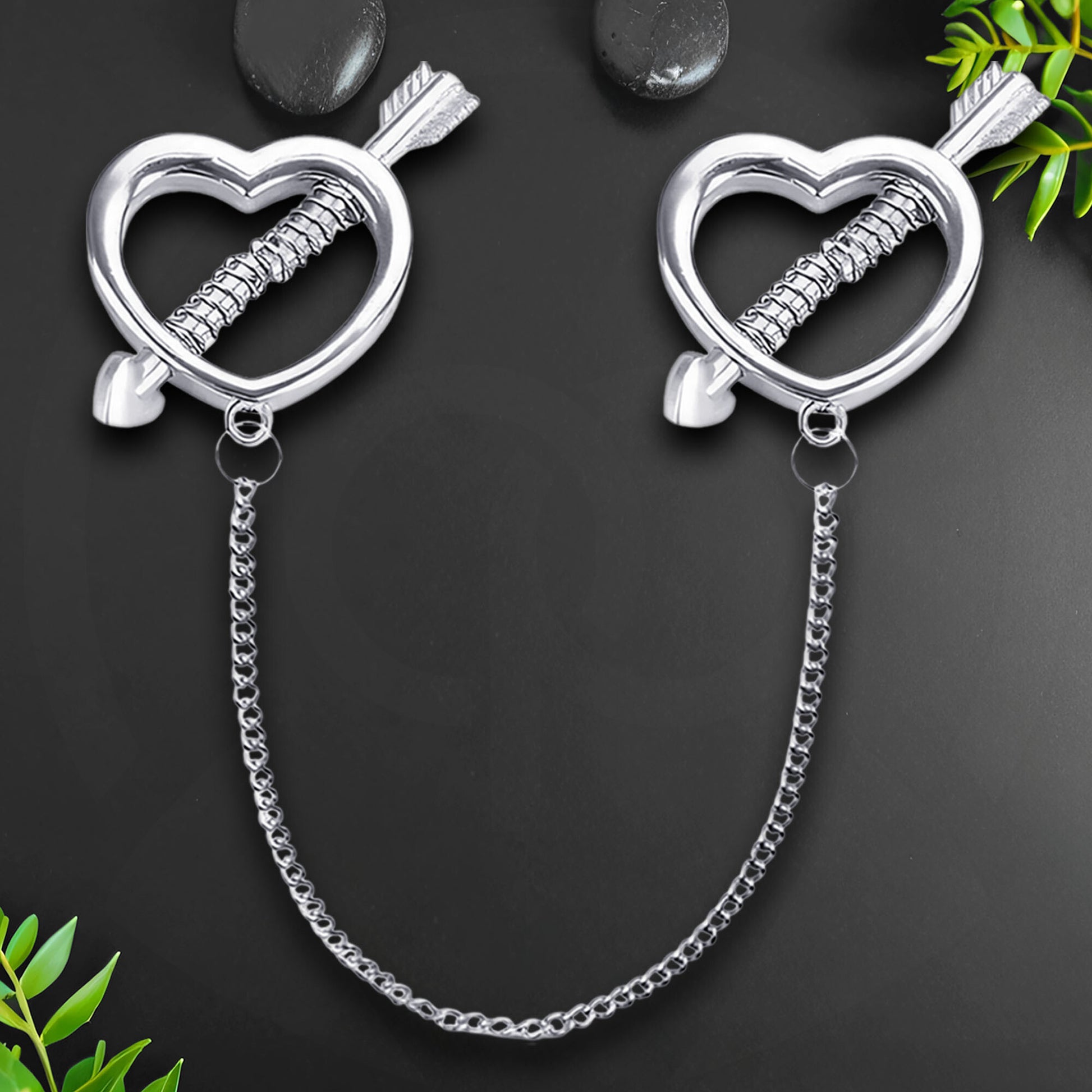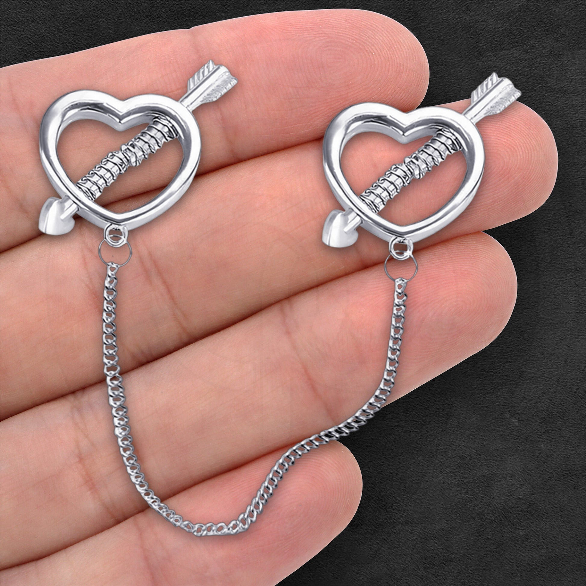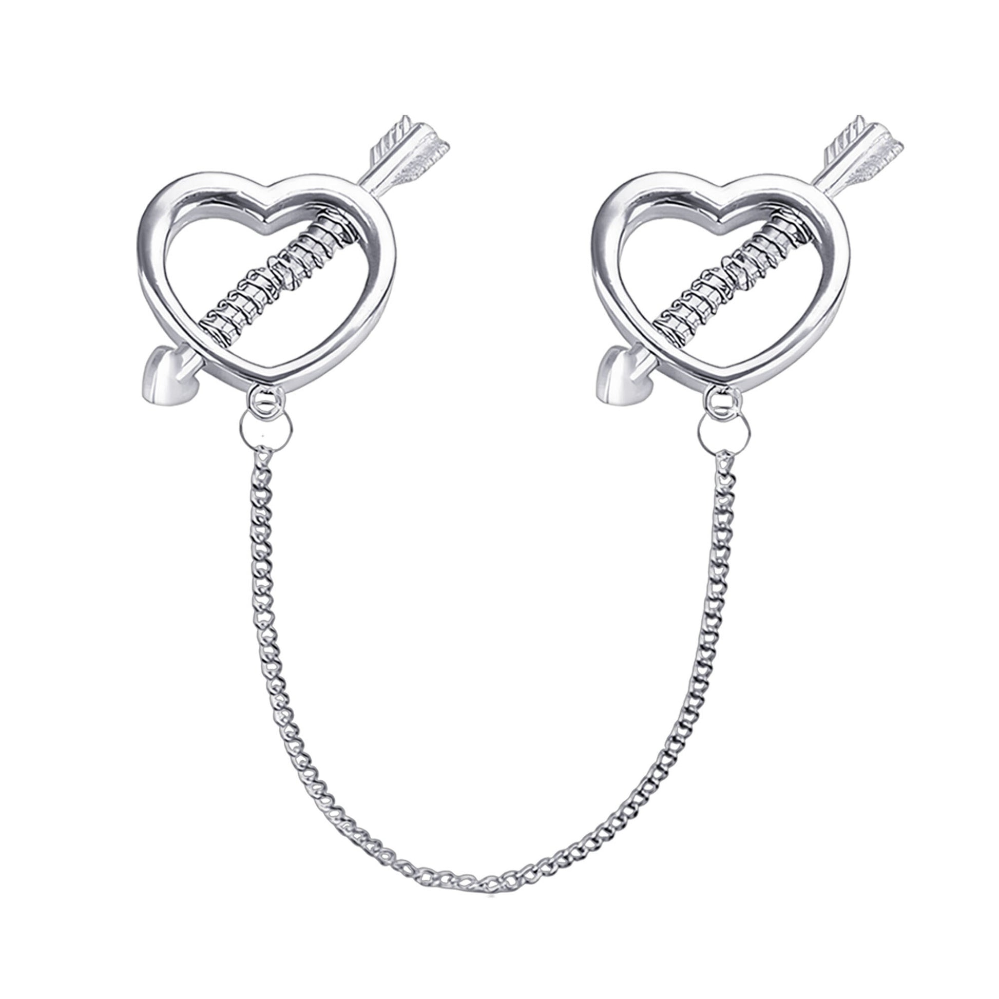 Surgical Steel Nipple Clips with Hearts and Chain