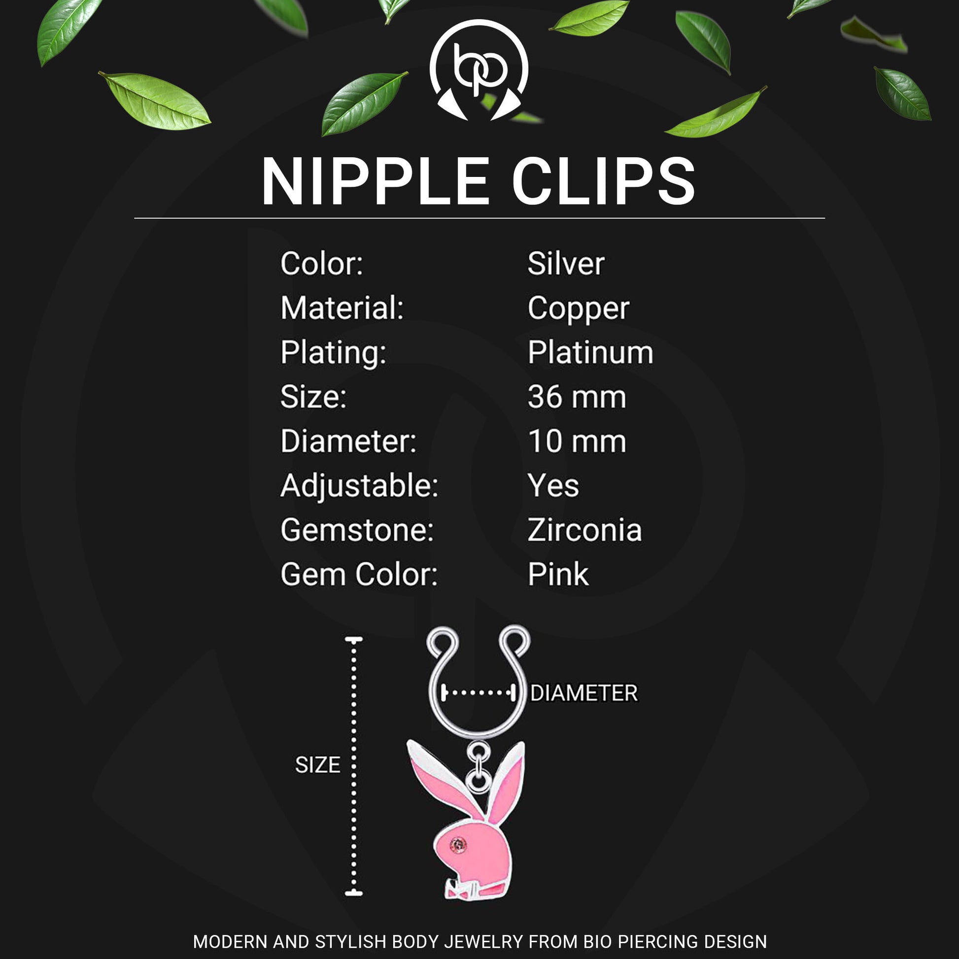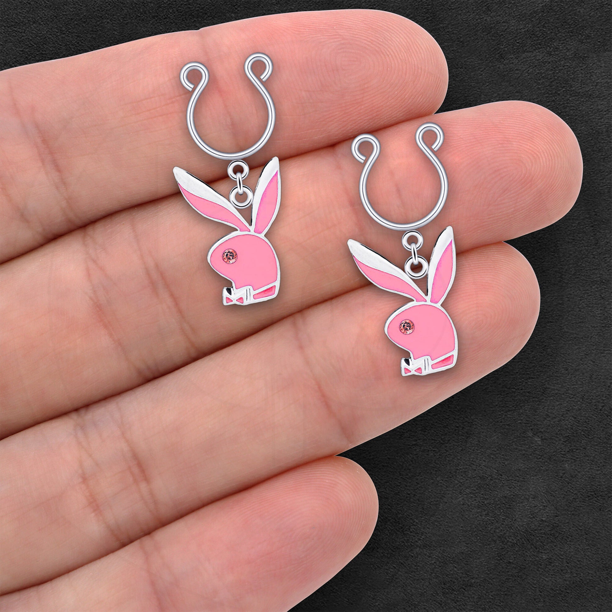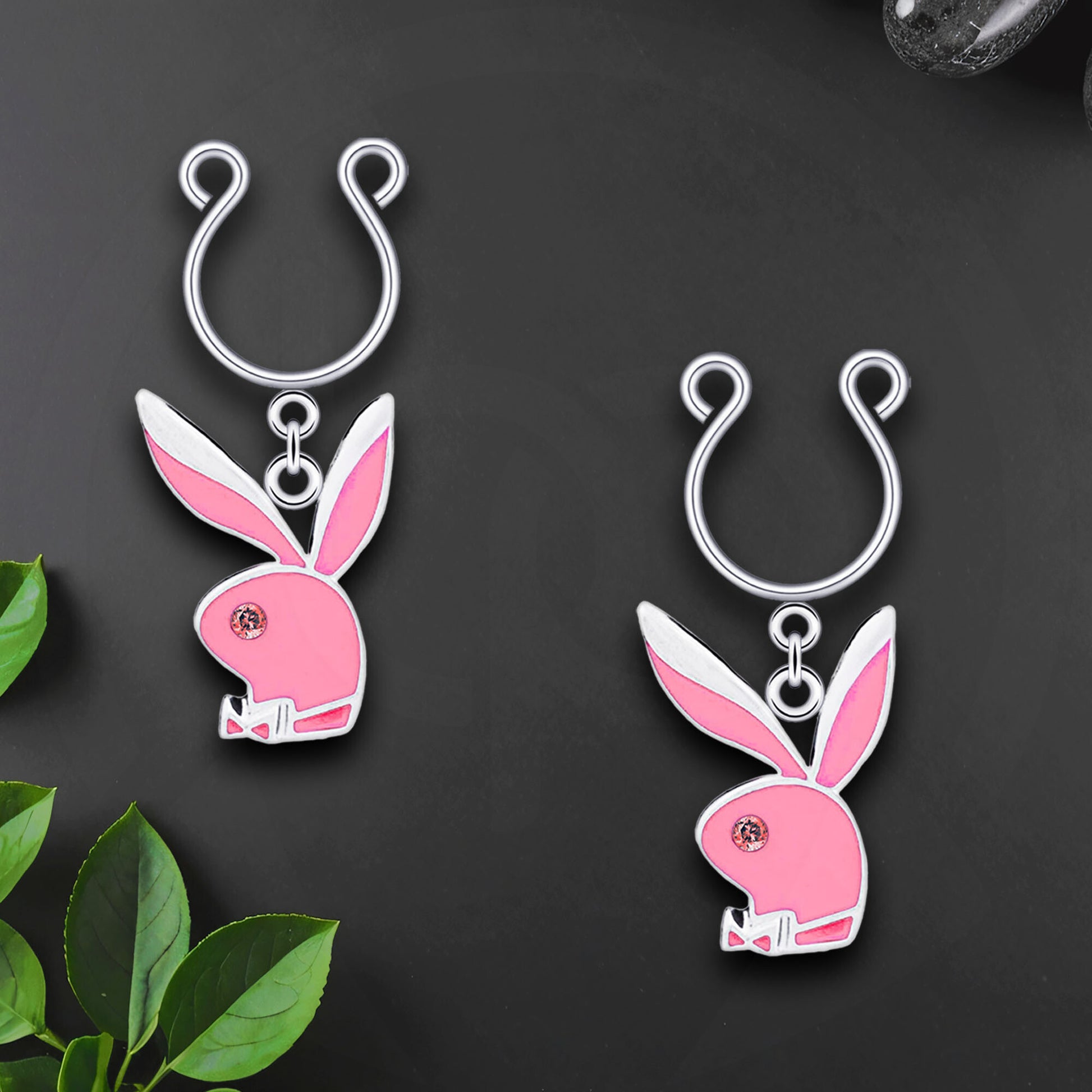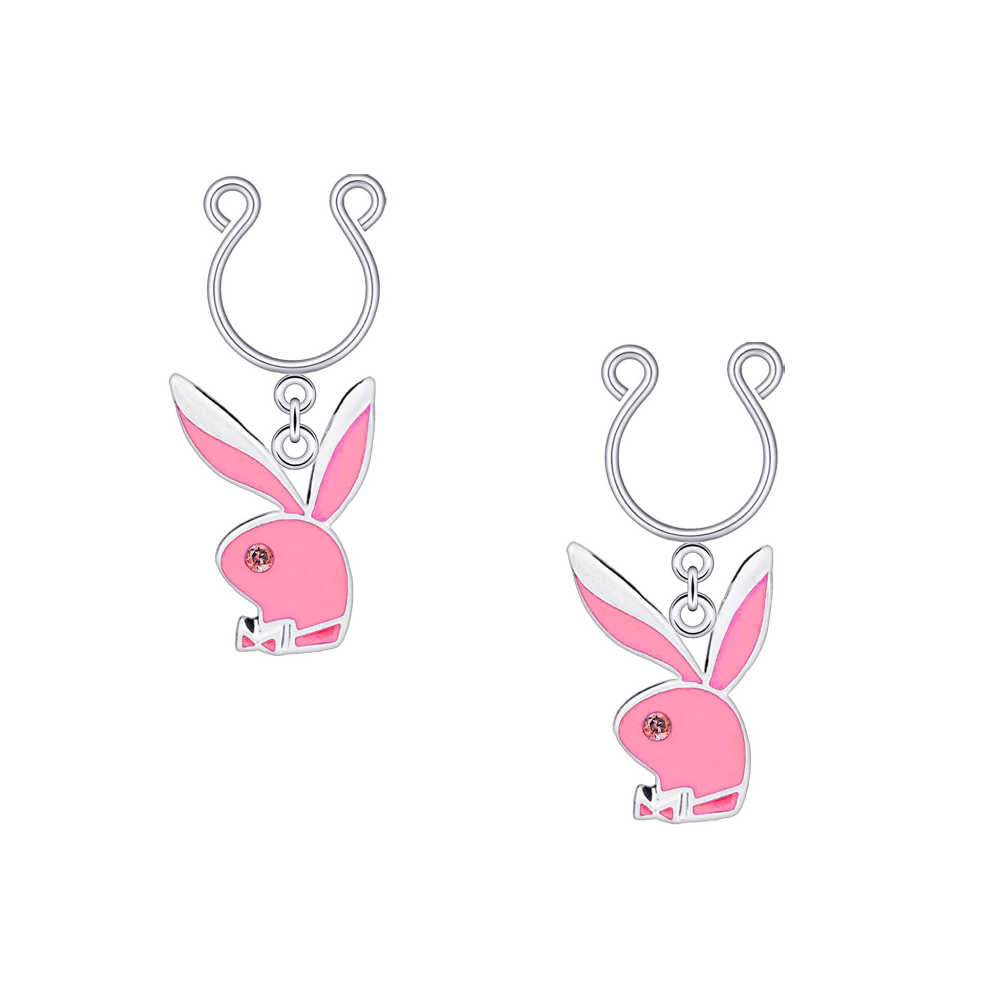 Silver Plated Nipple Clips with Pink Rabbits