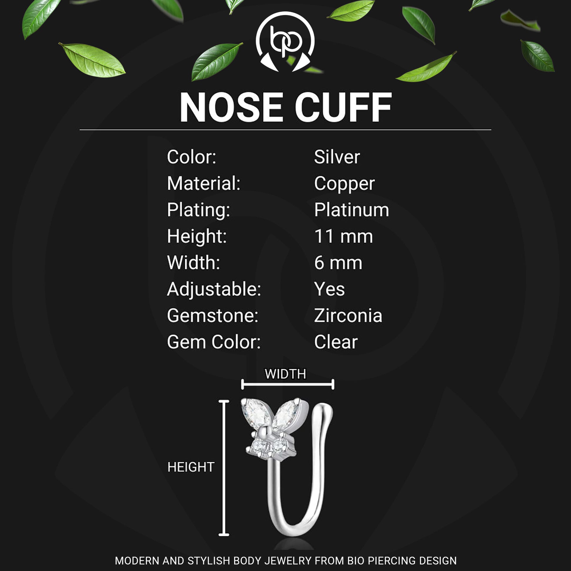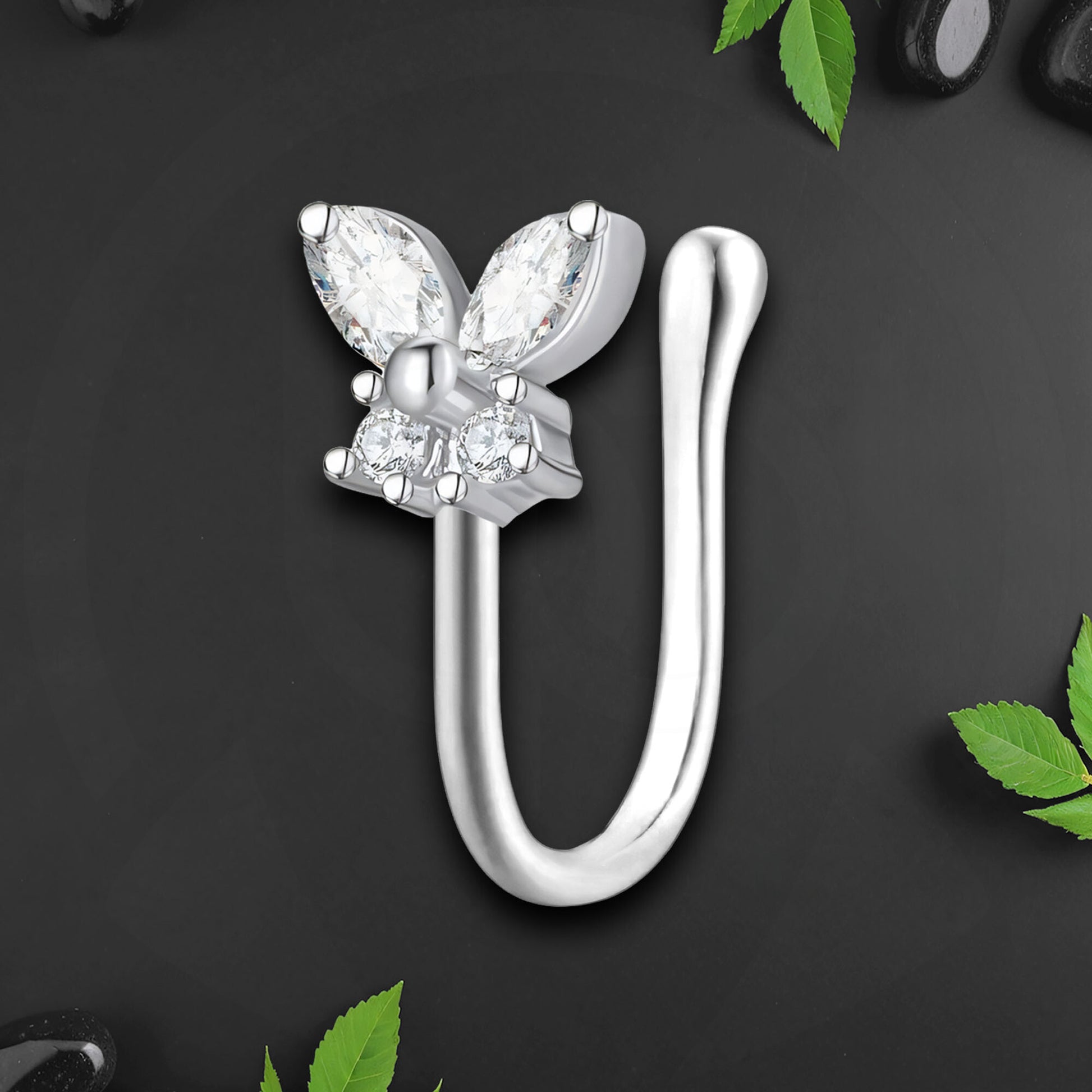 Silver Plated Nose Cuff with Butterfly