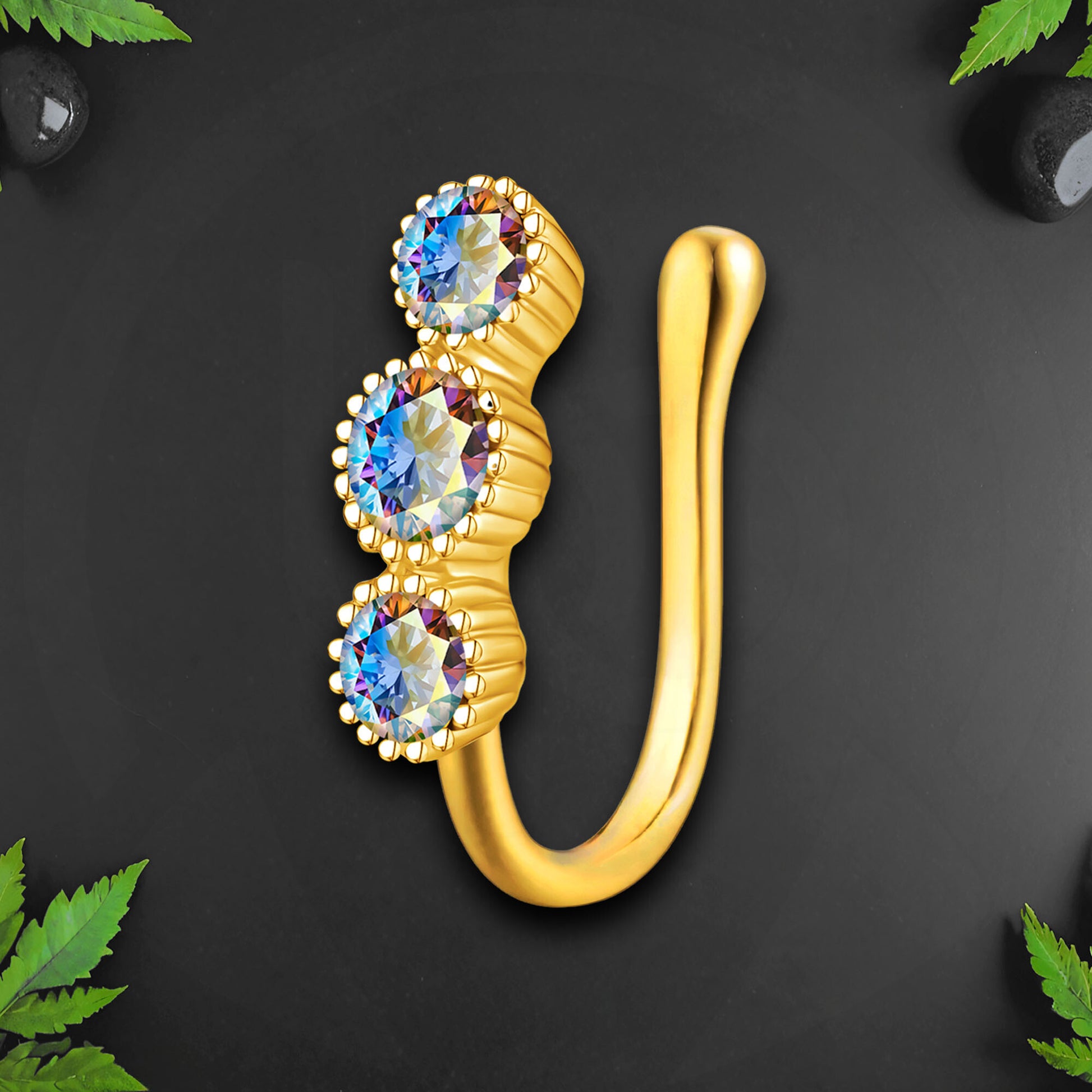 Premium materials like titanium, surgical steel, gold and platinum plating, Swarovski crystals, cubic zirconias, and natural opals.