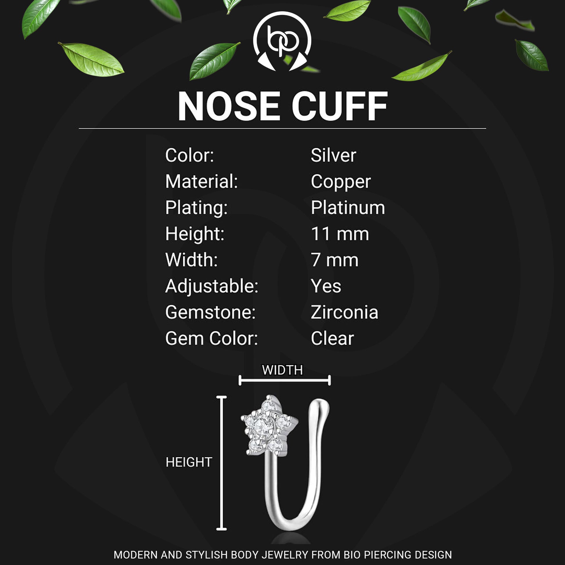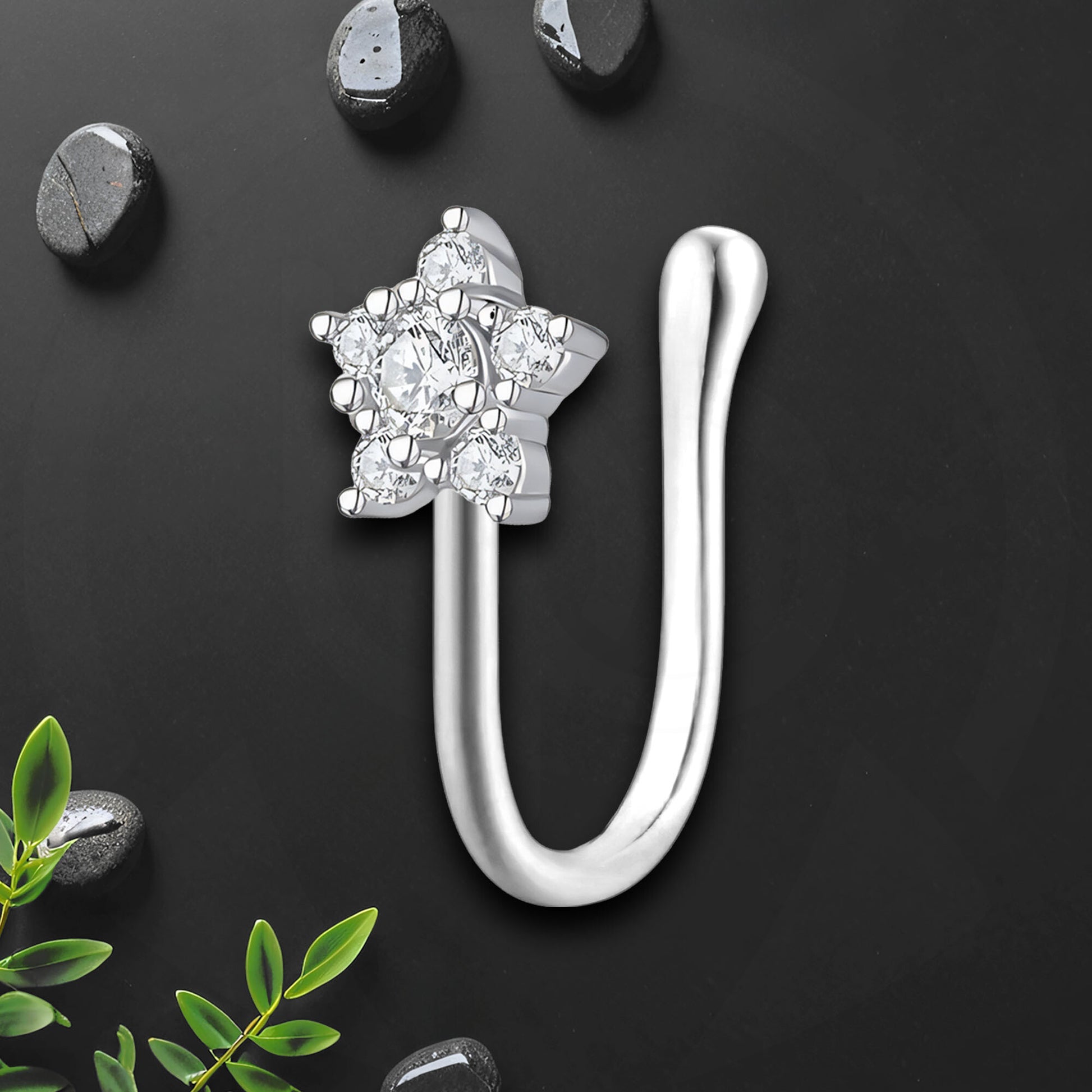 Silver Plated Nose Cuff with Flower