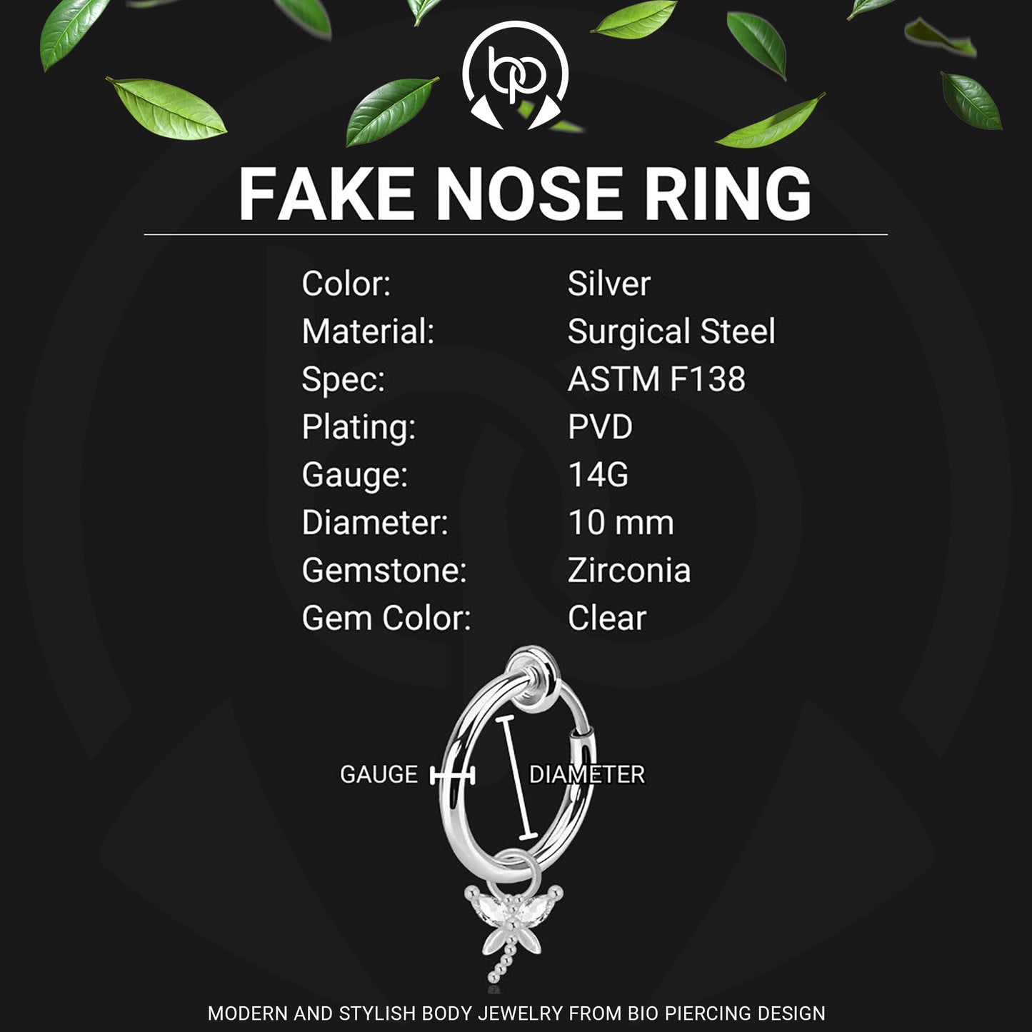 Surgical Steel Fake Ring with Dragonfly Dangle